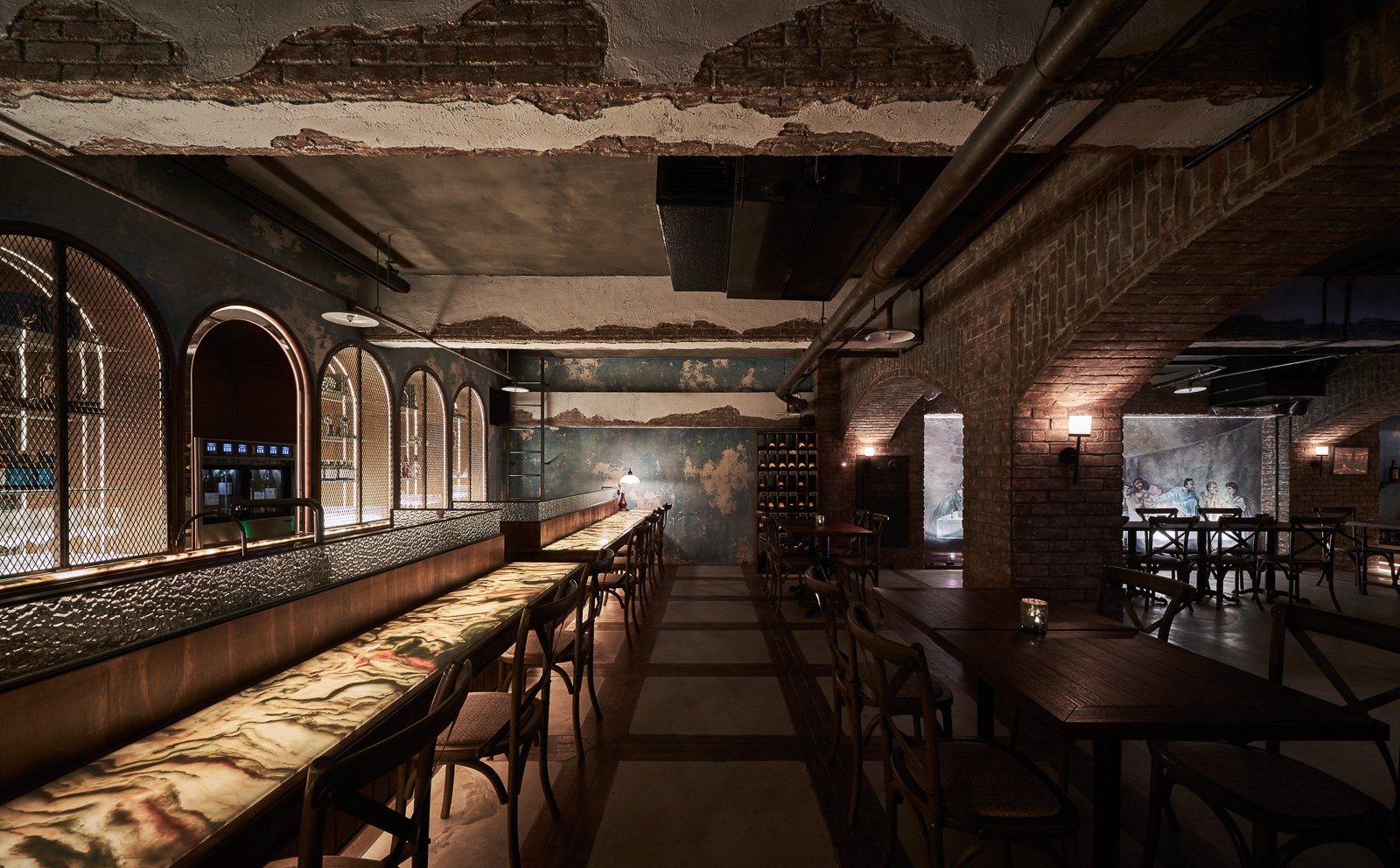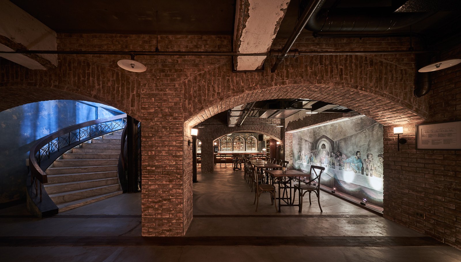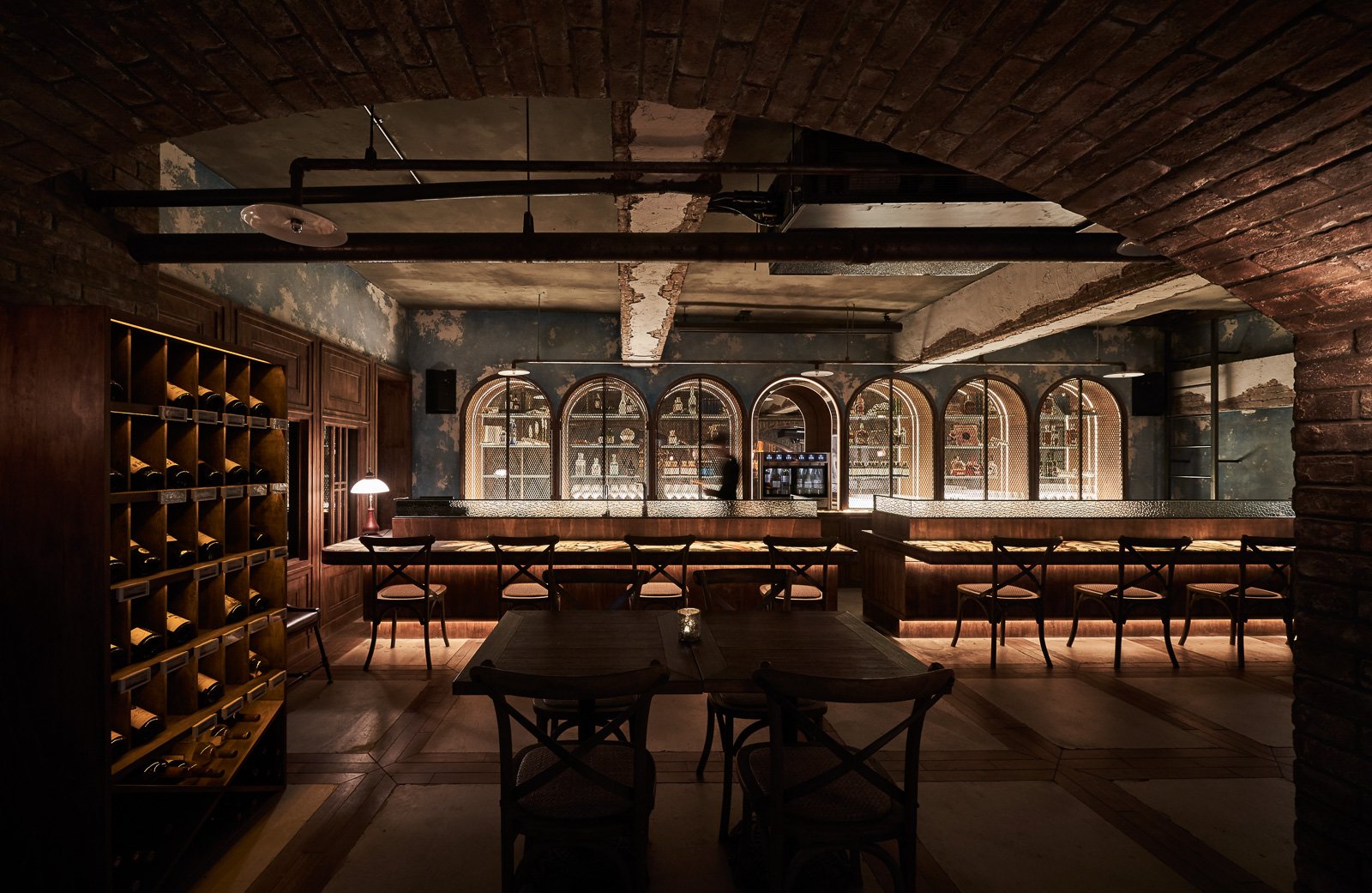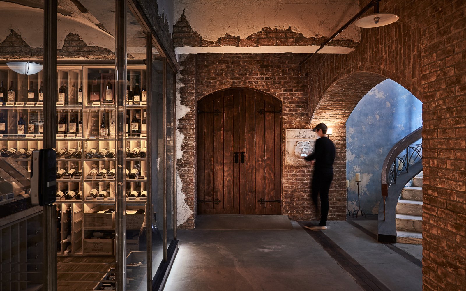 La Vie wanted to bring back a European wine cellar — not as a style, but as a feeling. Brick walls, vaulted ceilings, dim light: the kind of silence and weight that can only be understood by walking in. Our job was to make it real.